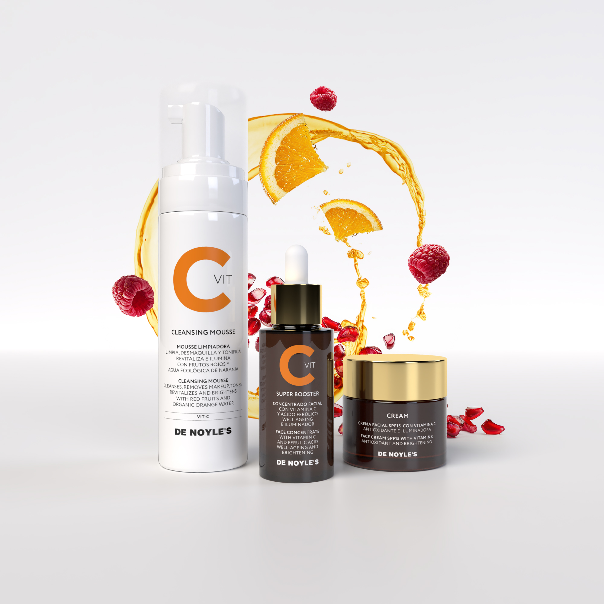 AQUA , ETHYLHEXYL METHOXYCINNAMATE, GLYCERIN, DICAPRYLYL ETHER, CAPRYLIC/CAPRIC TRIGLYCERIDE, C12-16 ALCOHOLS, OCTOCRYLENE, BUTYL METHOXYDIBENZOYLMETHANE, ASCORBYL GLUCOSIDE, HYDROGENATED LECITHIN, CITRUS AURANTIUM PEEL OIL, PUNICA GRANATUM FRUIT EXTRACT, FRAGARIA ANANASSA FRUIT EXTRACT, RUBUS FRUTICOSUS FRUIT EXTRACT, RUBUS IDAEUS FRUIT EXTRACT, HYDROXYETHYL ACRYLATE / SODIUM ACRYLOYLDIMETHYL TAURATE COPOLYMER, BENZYL ALCOHOL, PALMITIC ACID, DISODIUM EDTA, SODIUM HYDROXIDE, SODIUM CITRATE, DEHYDROACETIC ACID, BENZOIC ACID, POLYSORBATE 60, SORBITAN ISOSTEARATE, SORBIC ACID, CITRIC ACID, POTASSIUM SORBATE, SODIUM BENZOATE, CITRUS LIMON PEEL OIL, BHT, LIMONENE, LINALOOL, CITRAL, TERPINEOL, PINENE, CITRONELOL, TOCOPHEROL, PARFUM.