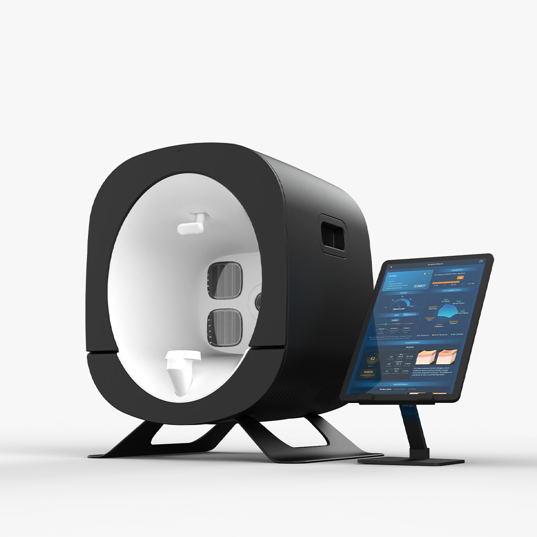 Poznaj nowoczesny analizator skóry Dermalyser, który łączy sztuczną inteligencję, zaawansowaną optykę Canon oraz wielospektralne oświetlenie LED, by dostarczyć najbardziej precyzyjną diagnostykę skóry – w zaledwie kilka sekund.