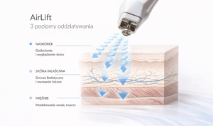 Lifteon to zaawansowane urządzenie nowej generacji, stworzone dla gabinetów, które chcą oferować widoczny efekt liftingu i odmłodzenia skóry bez igieł i bez okresu rekonwalescencji. Dzięki synergii czterech technologii – fali radiowej, ultradźwięków, światłoterapii LED oraz ciśnienia dodatniego Air Lift – zabiegi działają wielopoziomowo: od naskórka aż po mięśnie, zapewniając kompleksową poprawę jakości skóry.